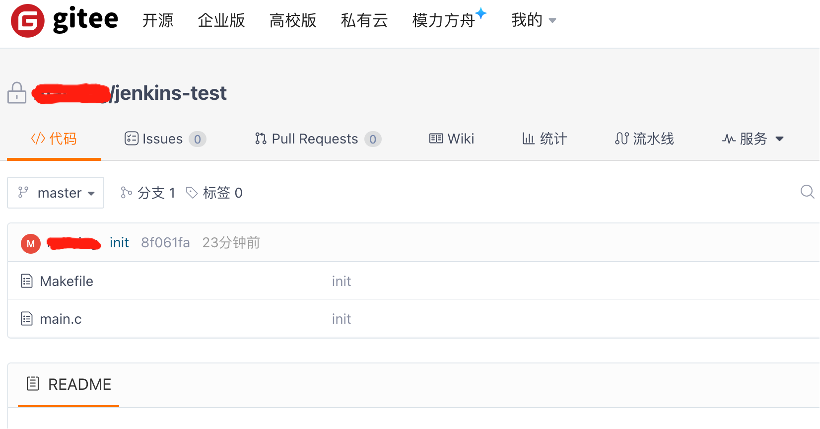 此处在gitee上创建一个jenkins-test项目,其他github/gitlab类似