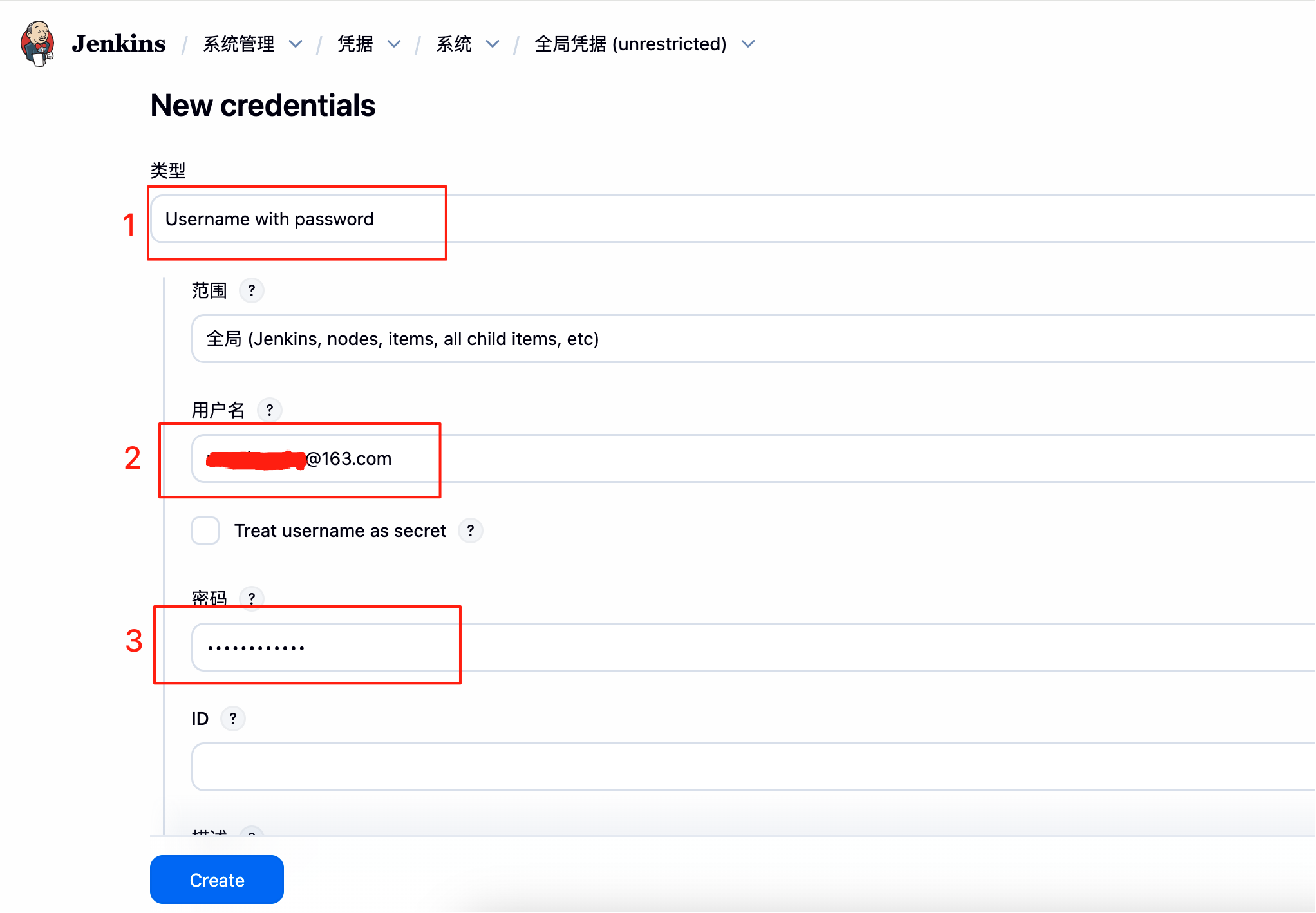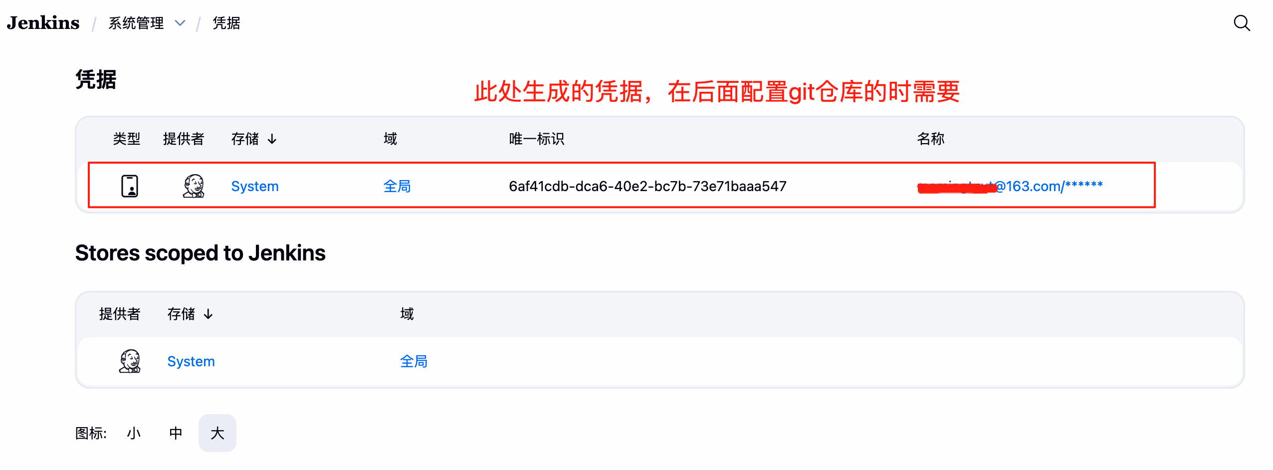 为了使jenkins可以访问git仓库,需要提前创建一个凭证,也就是用户名密码信息