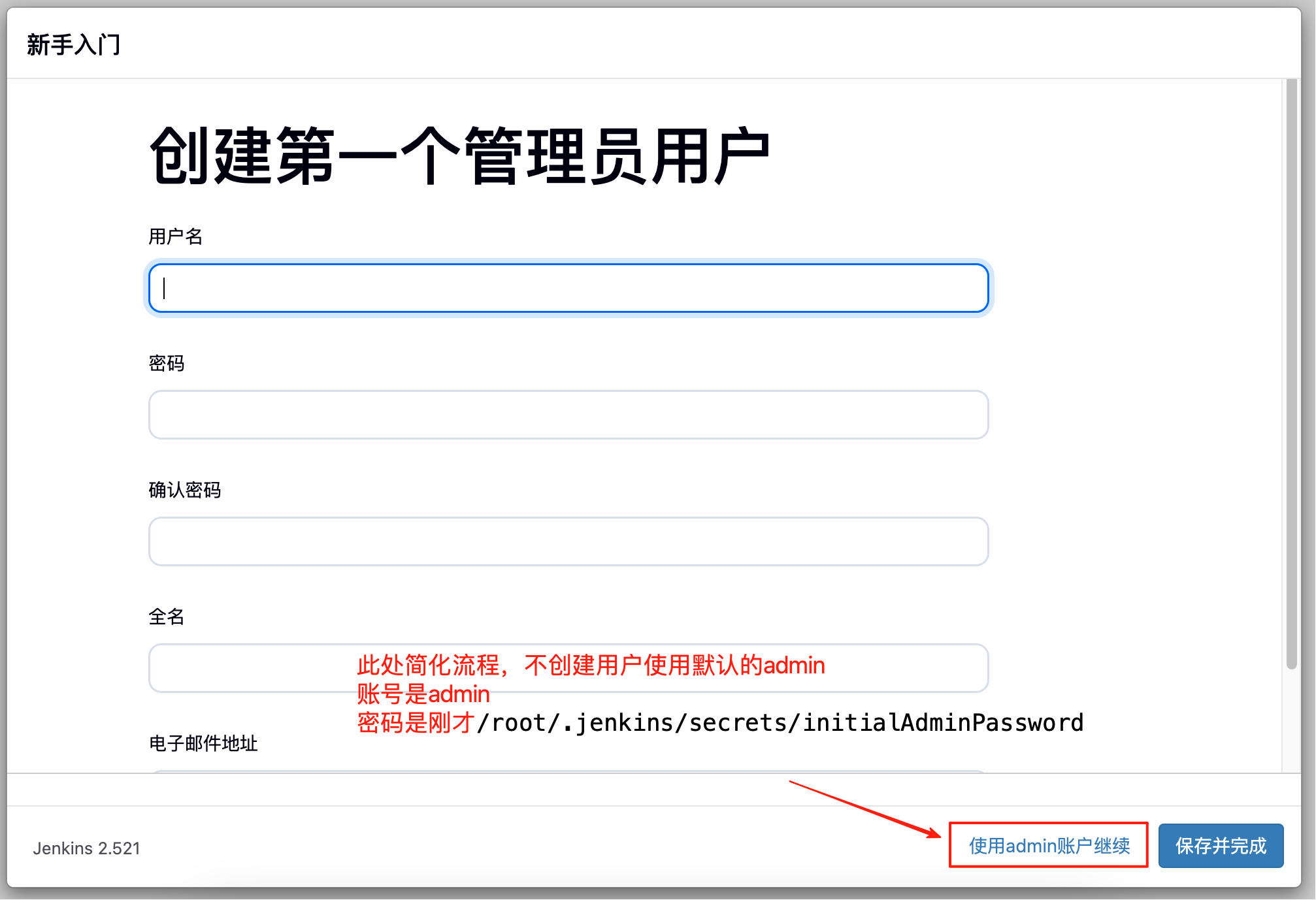 可选创建一个用户,不创建的话默认就是admin