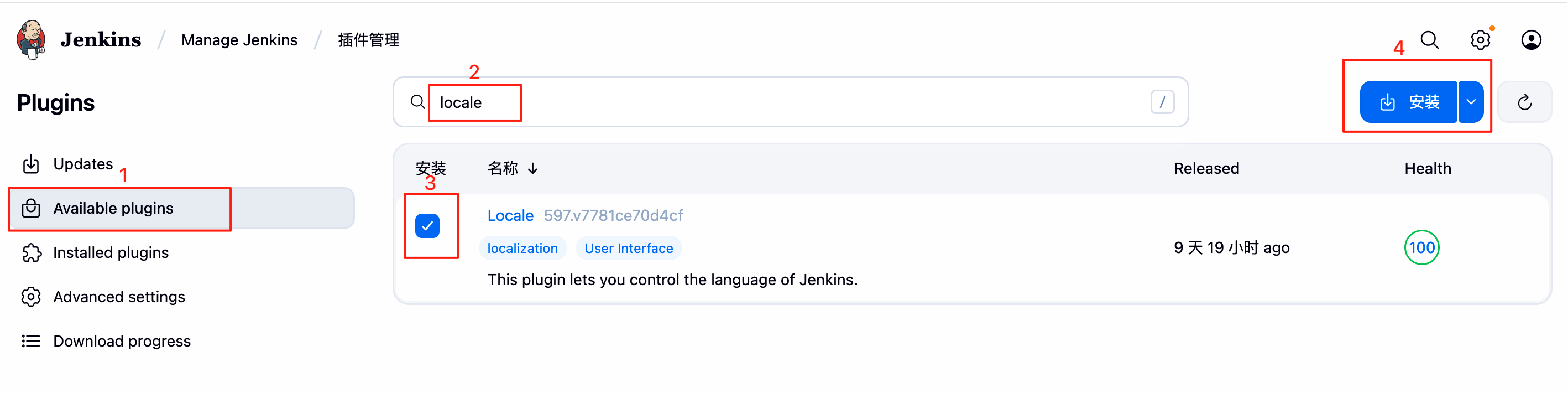 虽然推荐的插件安装了chineses语言包,但是并没有生效,需要安装一个locale插件